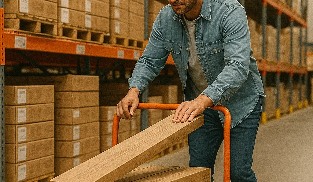 A contractor loading flooring into a truck, showing the fast pickup process.